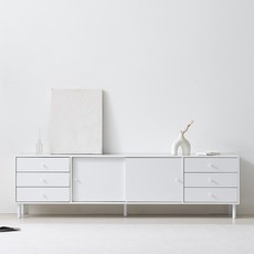 모던한 화이트 컬러로 제작된 슬라이딩 서랍형 거실장으로 TV와 수납을 동시에 활용하기 좋은 제품이에요.
