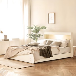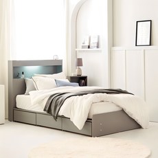 LED 조명과 3단 서랍 수납공간을 갖춘 실용적인 침대 프레임으로, 공간 활용이 뛰어나고 방문 설치로 편리하게 사용할 수 있다.