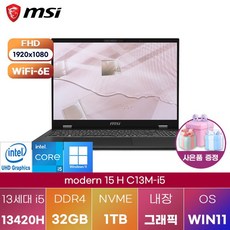MSI 모던 15 H C13M-i5 i5-13420H UHD Graphics WIN 11 설치 인강용 대학생 노트북, 1TB, 32GB, WIN11 Pro