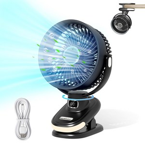 한정특가 ebeiya 무선 미니 회전형 선풍기 침대 무드등 탁상용 클립형 스탠드 벽걸이 저소음 집게형 써큘레이터 유모차 독서실 선풍기 2025, 블랙
