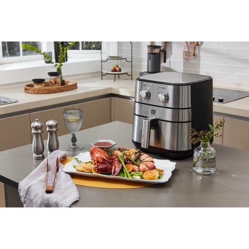 16L 대용량으로 가족 요리나 다량 조리에 적합하고 스테인리스 구조로 위생적이며 내구성이 좋아 주방 관리가 편리한 에어프라이어입니다.