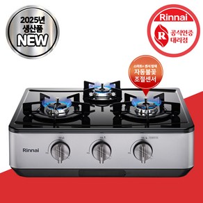 25년형 린나이 고화력 3구 가스레인지로, 실버 매립형 디자인과 안정적인 LNG 연소를 제공하며 다양한 요리에 적합한 제품입니다.