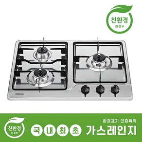 린나이 가스렌지 3구 프리스탠딩 과열방지 3구 가스레인지, LNG, 러스틱실버