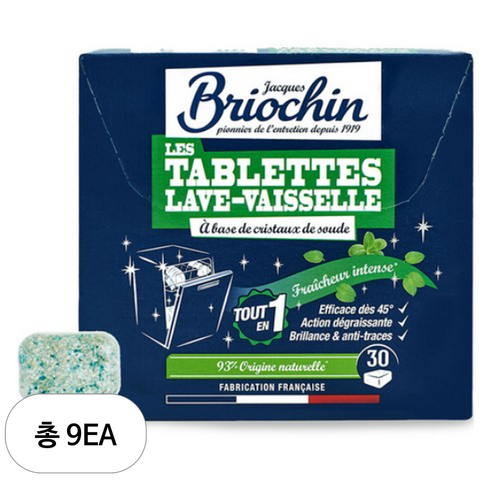 브리오신 식기세척기용 타블렛 주방세제 프레시민트향, 480g, 9개