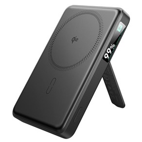 ESR Qi2 맥세이프 보조배터리 10000mAh 슬림 무선 고속 충전 PD 27W 핸드폰 거치대는 10,000mAh 용량으로 아이폰 등 Qi2 호환 기기를 최대 15W로 무선 충전할 수 있고 USB‑C PD 27W 유선 충전도 지원하며 슬림한 디자인과 거치 기능으로 휴대성과 사용 편의성을 갖춘 휴대용 전원장치입니다.