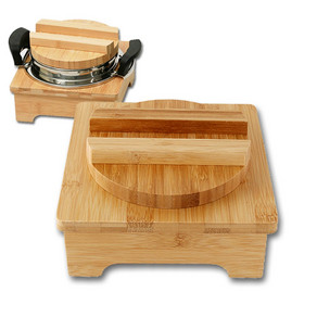 - 압력밥솥과 대나무 받침대가 함께 구성된 세트다
