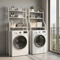 세탁기 위 공간을 효율적으로 활용할 수 있는 견고한 선반으로, 다양한 세탁용품을 깔끔하게 정리할 수 있으며 설치가 간편하고 내구성이 뛰어난 제품입니다.