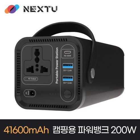 넥스트유 41600mAh 대용량 캠핑용 파워뱅크로, 다양한 기기 동시 충전이 가능하며 야외 활동에 최적화된 휴대형 배터리 장치입니다.