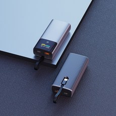 10000mAh 용량으로 스마트폰 등 기기를 여러 번 충전할 수 있고 22.5W 고속 충전 지원과 LCD 디스플레이로 남은 배터리 잔량을 확인할 수 있는 블랙 보조배터리입니다.