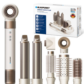 블라우풍트 BLP‑HD8141WGYL은 BLDC 모터 기반 7‑in‑1 멀티 스타일링 기능으로 다양한 헤어 스타일 연출이 가능하며 거치대가 포함돼 보관과 사용이 편리한 웜그레이 컬러의 헤어 스타일러 세트입니다.