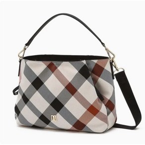 체크 패턴과 금장 장식이 어우러진 경량 여성용 토트백으로, 토트와 크로스 겸용으로 사용 가능하며 세련된 데일리 스타일을 완성할 수 있음.