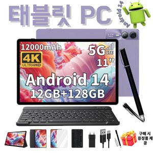 11인치 태블릿 PC는 Android 14와 12GB 램, 128GB SSD를 갖춰 빠른 성능을 제공하며, 4K 해상도 디스플레이와 12000mAh 배터리로 장시간 사용이 가능하고, 전후면 카메라와 Wi-Fi·셀룰러 연결로 학습, 업무, 게임, 미디어 감상에 적합하다.