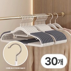 일상가 논슬립 어깨뿔방지 고급형 옷걸이 30개 세트는 옷 어깨가 늘어나지 않도록 설계된 고급형 옷걸이로, 회전 가능한 고리로 사용이 편리하며 논슬립 기능으로 다양한 옷을 안정적으로 걸 수 있습니다.