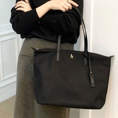 헤지스 25FW 블랙 나일론 퍼피로고 탑지퍼 나일론 쇼퍼백L (선물포장)