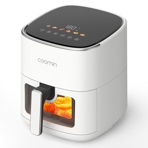 투명창 에어프라이어 시각화 에어프라이기 가정용 에어후라이기 5L 대용량 삼겹살 요리 치킨 감자 고구마 생선 군밤 적용 스마트 바스켓형, 화이트