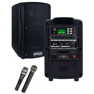 GRACE 블루투스 충전식 무선 앰프 150W + 유선마이크 + 무선마이크, EG-116N, 혼합색상