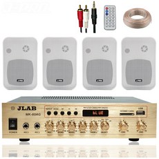 JLAB 블루투스 매장용 카페 매장 업소용 벽걸이 미니 앰프 스피커 4개+리모콘+PC선 1.5M+스피커케이블 40M, 화이트