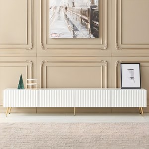퍼리든 루모스 LED 거실장은 화이트와 골드 조합으로 세련된 거실 분위기를 연출하며, LED 조명과 넓은 상판, 충분한 수납 공간으로 TV와 소품을 편리하게 배치할 수 있는 실용적인 가구입니다.