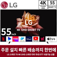 LG 55인치 4K UHD LED 스마트 TV는 울트라HD 화질로 선명한 화면을 제공하며, 다양한 스마트 기능과 스탠드형 디자인으로 방문 설치가 가능한 제품입니다.