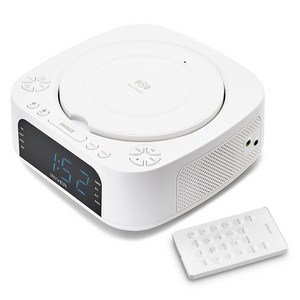 CD 재생과 알람 기능을 동시에 제공하며, 깔끔한 화이트 디자인으로 인테리어에 어울리고, 시계 기능과 다양한 음원 재생을 지원하는 멀티 기능 플레이어입니다.