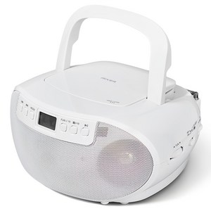 블루투스와 FM 라디오, CD 플레이어 기능을 결합해 다양한 음악을 즐길 수 있으며, 깔끔한 화이트 디자인과 휴대성이 뛰어나 가정이나 실외에서 모두 사용 가능한 멀티 오디오 기기입니다.