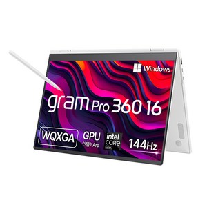 LG 2025 그램 프로360 16은 16인치 터치스크린과 인텔 울트라7, Arc 그래픽을 탑재한 2in1 노트북으로, 32GB 메모리와 512GB 저장 공간으로 직장인용 고성능 작업과 휴대성을 동시에 제공하며, 스타일러스펜 지원으로 창작과 필기 활용이 가능하다.